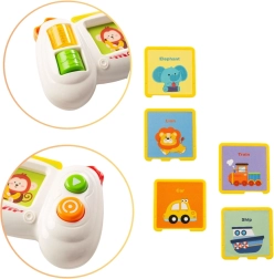 Pachetul include carduri colorate care pot fi introduse în consolă. Cu ajutorul lor, copiii învață să recunoască animale, mijloace de transport și obiecte din jur, exersându-și memoria și capacitatea de concentrare. Dimensiunile compacte o fac un companion grozav acasă și în călătorii.
