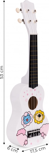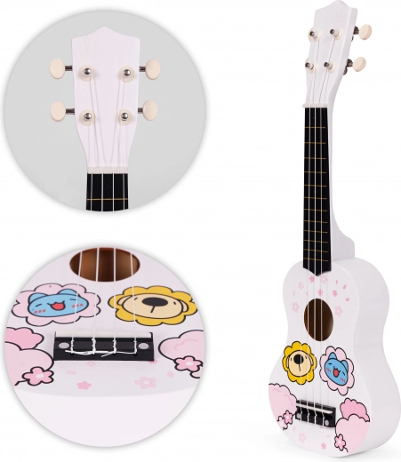 Ukulele-ul pentru copii ECOTOYS este o alegere excelentă pentru micii muzicieni de la 3 ani. Datorită opțiunii de acordaj și construcției realiste, copiii pot învăța ușor acorduri și melodii de bază. Corpul din lemn combinat cu corzile din nailon oferă un ton plăcut, cald și o interpretare confortabilă încă de la primele încercări. Imprimeul vesel aduce bucurie oricărui concert de acasă sau spectacol la grădiniță.