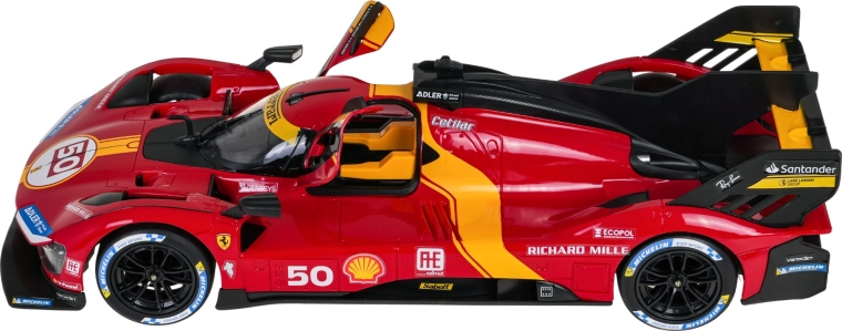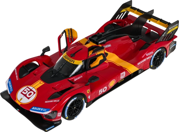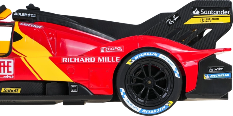 Devino pilot de supersport și domină pista cu modelul FERRARI 499P. Proporțiile fidele, autocolantele de curse și accentele galbene caracteristice subliniază aspectul autentic. Telecomanda în stil volan Ferrari asigură manevrabilitate precisă atât în interior, cât și în exterior.