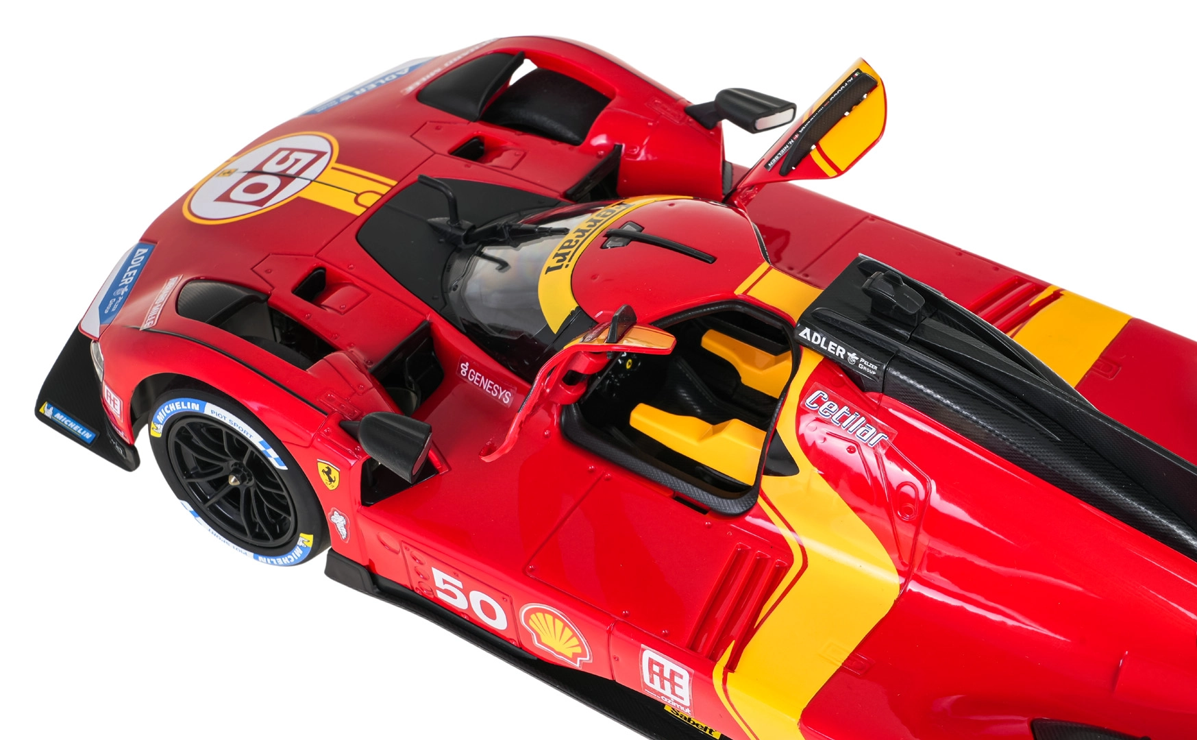 - roșu cu accente galbene și detalii oficiale Ferrari