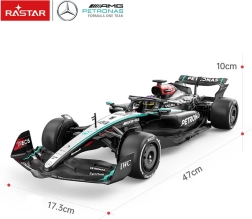 Bucurați-vă de adrenalina curselor cu monopostul RC fidel redat MERCEDES-AMG F1 W15 E PERFORMANCE. Modelul este realizat din plastic ABS de calitate și componente mecanice și electronice precise, care garantează o durată lungă de viață și reacții exacte la comenzi. Atât interiorul, cât și caroseria se remarcă prin detalii atent realizate, astfel încât mașina arată ca un veritabil model de curse.