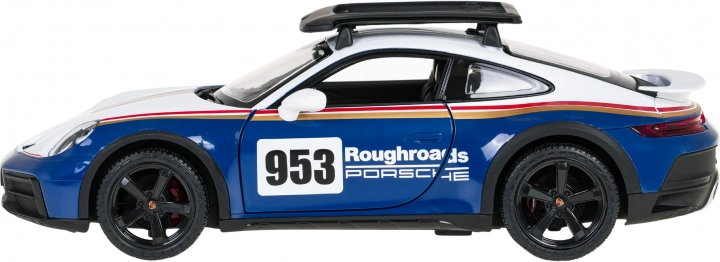 Proporții fidele PORSCHE 911 Dakar, interior detaliat și uși funcționale pentru o experiență maximă atât la condus, cât și la expunere.