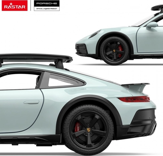 Mașină RC PORSCHE 911 Dakar 1:14 de la RASTAR cu lumini LED, control 2,4 GHz, roți din cauciuc și uși deschise. Execuție detaliată, culoare mentă.