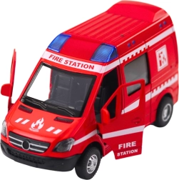 Descoperiți un model de autospecială la scara 1:32 realizat cu atenție la detalii, care reproduce fidel un vehicul de intervenție real. Construcția robustă din metal și plastic de calitate asigură durabilitate, iar culoarea roșie cu inscripțiile „FIRE STATION” adaugă autenticitate. Mecanismul pull-back se armează prin tragere înapoi, iar vehiculul pornește singur înainte, amplificând jocul dinamic.