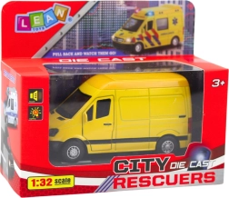 Dubă galbenă realistă la scară 1:32, care combină piese metalice și plastic de calitate pentru o durabilitate sporită și un aspect atrăgător. Oferă mecanism cu arc (pull back), uși care se deschid și efecte de lumină și sunet, fiind ideală atât pentru joacă, cât și ca model de colecție.