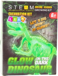 Acest set arheologic este alegerea ideală pentru copiii care vor să trăiască experiența autentică a săpăturilor, asemenea paleontologilor. În cubul de ghips se află un schelet de dinozaur luminos, ce poate fi dezvăluit cu atenție și apoi asamblat într-un model complet. Efectul de strălucire în întuneric sporește atractivitatea jocului și stimulează imaginația.