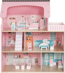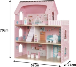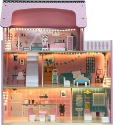 Marea căsuță de păpuși din lemn KRUZZEL cu iluminare LED, 3 etaje și 5 camere cu balcon va încânta orice copil. Este sigură și robustă, realizată din lemn șlefuit fin, fără muchii ascuțite. În pachet găsiți set complet de mobilier și accesorii, astfel încât distracția poate începe imediat după asamblare. Lumina caldă albă creează o atmosferă magică și pentru joaca de seară.