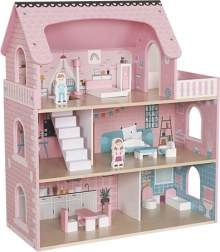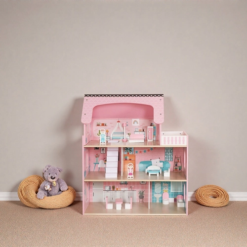 Sunt incluse dotări complete de mobilier, astfel încât copiii pot amenaja imediat camerele și își pot dezvolta imaginația. Produsul este în conformitate cu normele europene și este realizat din lemn ecologic, ceea ce îl face o alegere responsabilă pentru familie și pentru planetă.