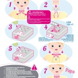 - „mama”, „papa”, râs (activare prin apăsarea pieptului)