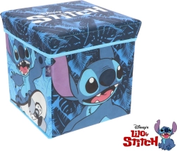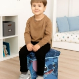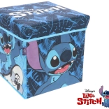 Cutie practică de depozitare pliabilă, cu capac și motiv STITCH, care servește totodată ca taburet confortabil. Datorită construcției robuste și capacității capacului de 80 kg, este ideală pentru camera copilului, camera de joacă și baie. Oferă un volum de 27 l, se pliază ușor în formă plată și ajută la menținerea ordinii în jucării și cărți.