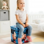 Cutia practică și rezistentă 2 în 1 combină spațiul de depozitare cu volum de 27 l cu un șezut confortabil. Datorită designului licențiat MICKEY MOUSE îi încântă pe micii fani și în același timp ajută la menținerea ordinii în cameră. Când nu este folosită, o puteți plia plat pentru a economisi spațiu.