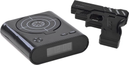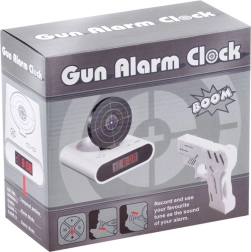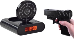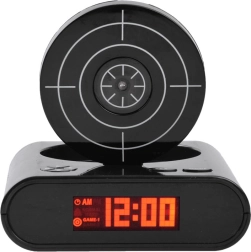 Fă-ți trezirea de dimineață mai plăcută cu o soluție originală: ceas deșteptător cu pistol și țintă. Când sună alarma, este suficient să țintești și să „tragi” în țintă pentru a o opri. Oferă două moduri de joc, posibilitatea de a înregistra propria alarmă și un LCD lizibil. Poate fi alimentat cu baterii AA sau prin micro USB (cablul nu este inclus). Distracție grozavă și trezire funcțională într-un singur dispozitiv.