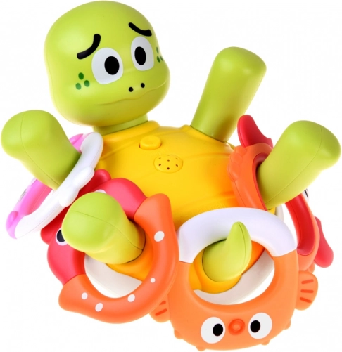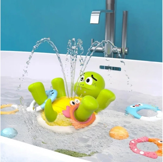 Această țestoasă drăgălașă, odată așezată pe apă, începe să împrăștie jeturi fine, care îi încântă pe copii și le dezvoltă relația cu apa. Include discuri colorate interschimbabile cu diverse modele, care schimbă aspectul jucăriei și mențin atenția copiilor în timpul băii.