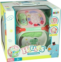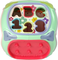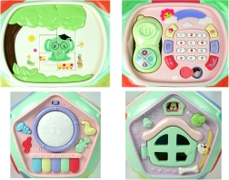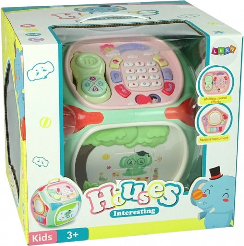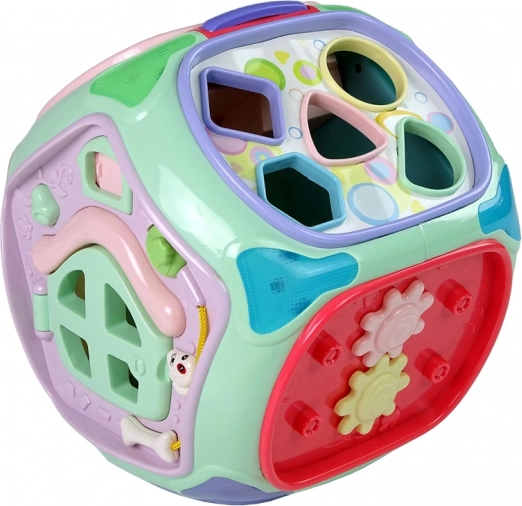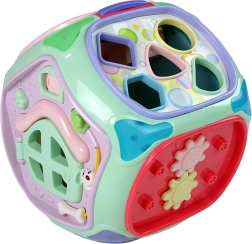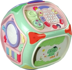 Acest cub interactiv colorat, sub forma unei căsuțe, îmbină mai multe jocuri educative într-o singură jucărie. Fiecare față oferă o activitate diferită care motivează copilul să exploreze și îi dezvoltă simțurile și abilitățile. Efectele luminoase și sonore stimulează auzul și văzul, în timp ce elementele mecanice exersează coordonarea mână–ochi.