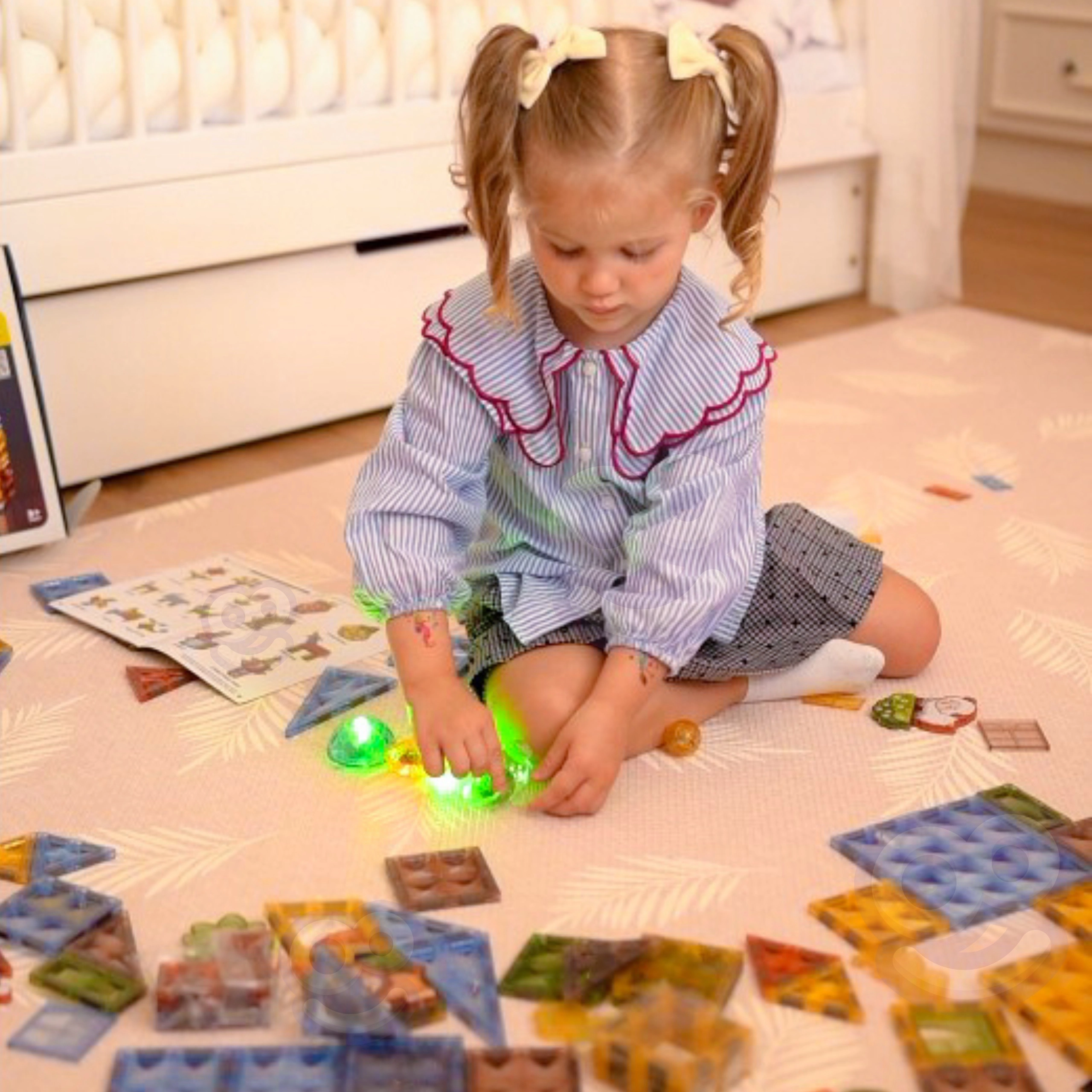 Setul magnetic Woopie 3D Lumea animalelor aduce 124 de piese pentru construcții nesfârșite – de la garduri și țarcuri până la întregi regate ale animalelor. Componentele luminoase oferă fiecărui model un efect impresionant și transformă joaca într-o aventură de seară. Magneții puternici asigură stabilitate și o îmbinare ușoară chiar și pentru copiii mai mici.