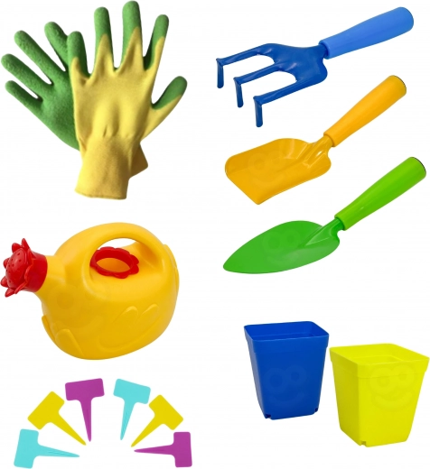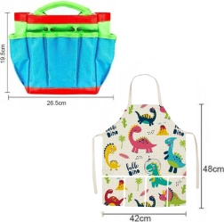 Șorțul practic cu motiv de dinozauri și geanta pentru unelte ajută la menținerea ordinii, în timp ce ghivecele și etichetele colorate pentru plante îi învață pe copii să distingă și să urmărească creșterea. Setul este grozav pentru joacă în grădină, pe balcon, în nisipar și lângă apă.