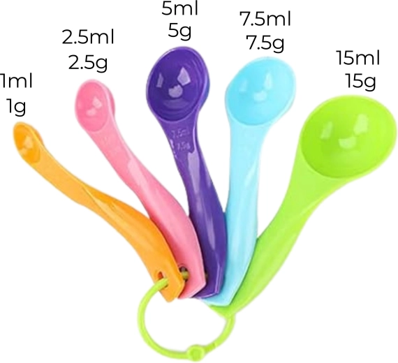 Instrumente ușoare din materiale sigure pentru contactul cu alimentele, elemente din silicon pentru curățare simplă și dimensiuni pentru copii, pentru o prindere mai bună și siguranță în utilizare.