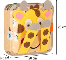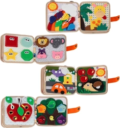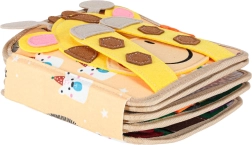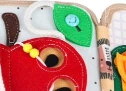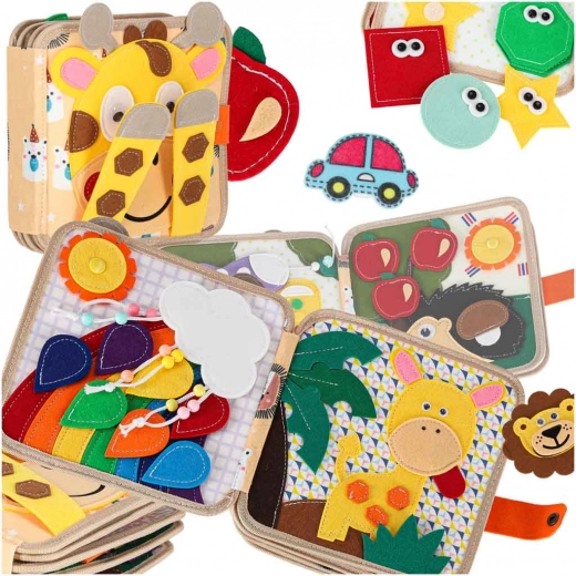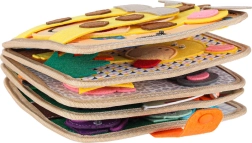 Această cărticică senzorială și educativă din fetru moale le oferă copiilor o formă distractivă de învățare. Elementele detașabile și mobile cu arici sau capse stimulează interacțiunea, antrenează coordonarea mână–ochi și dezvoltă motricitatea fină. Datorită culorilor vii și temelor variate, copiii învață să recunoască culori, forme, animale și fenomene din natură.