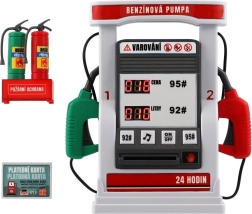Setul include două furtunuri de alimentare, card de plată, echipamente de stingere și alte accesorii care creează un mediu realist de stație de carburant. Ambalajul compact este ideal pentru joacă acasă sau în călătorii.