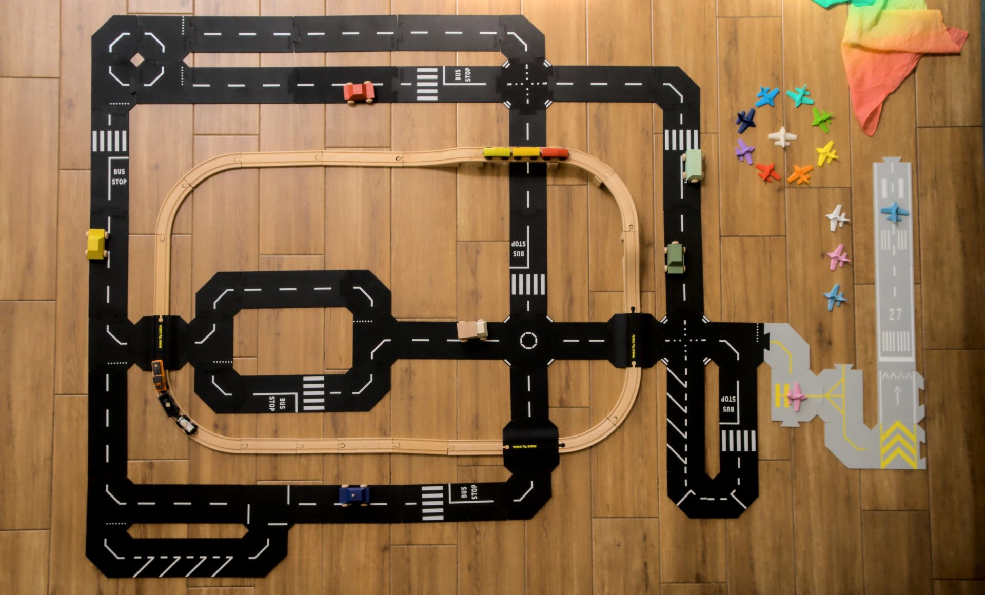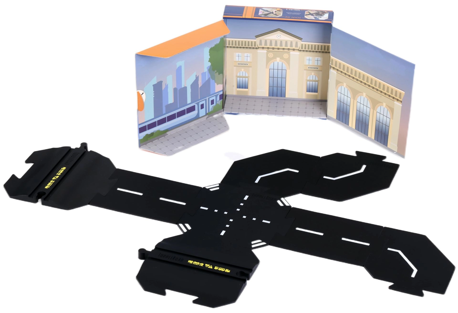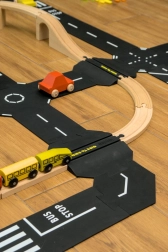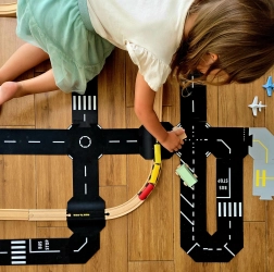Acest set de extindere mai mare de la Toddleroad aduce trecerea la nivel, care permite conectarea seturilor rutiere Oraș sau Metropolă cu șinele din lemn preferate. Datorită compatibilității cu BRIO și MAXIM, copiii pot trece ușor cu mașinuțele peste șine și își pot extinde scenariile de joc. Piesa față-verso cu mic sens giratoriu și intersecție în X adaugă direcții și manevre suplimentare, astfel încât chiar și seturile mai mici capătă noi posibilități.