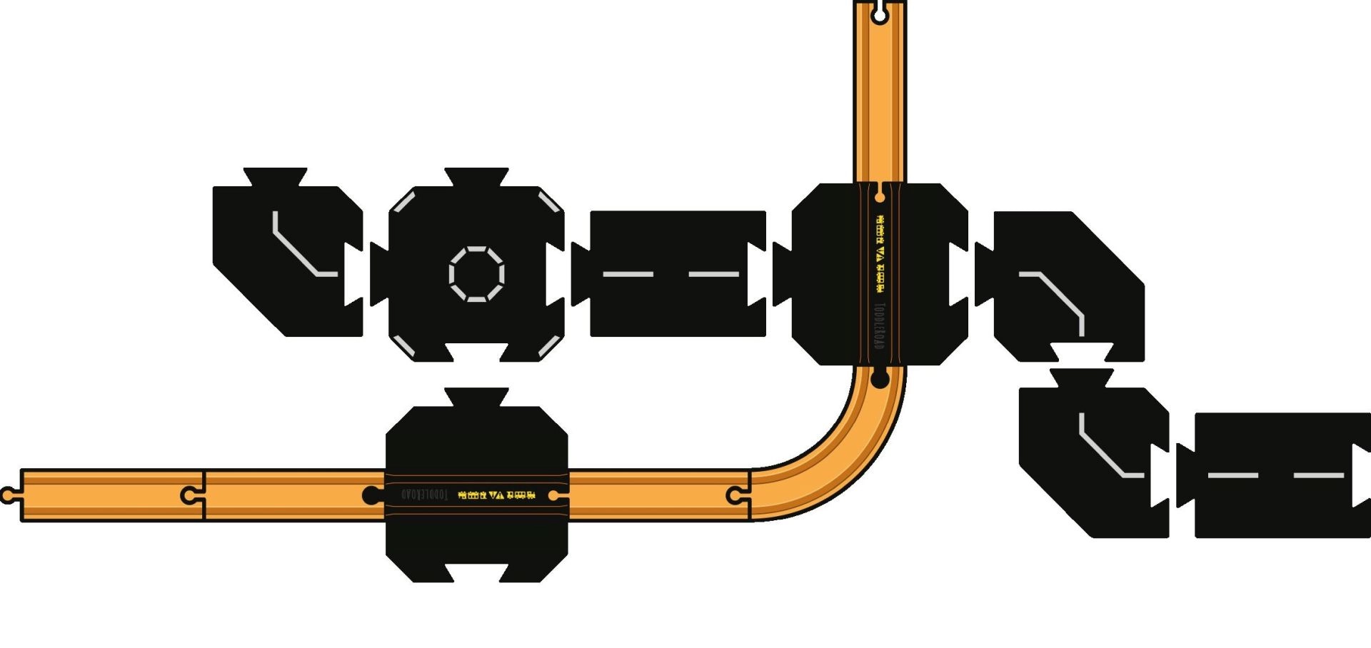 - Piese față-verso – sens giratoriu și intersecție în X pentru mai multe trasee și circuite închise.