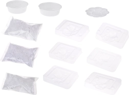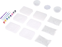 Conținutul pachetului: 3 punguțe cu ipsos, 3 forme pentru unicorni, 2 măsuri gradate, 1 paletă/bol pentru amestecarea culorilor, 8 culori, 2 pensule, 1 cuțitaș din plastic. Sfat: pentru o suprafață turnată netedă, amestecați ipsosul până la dizolvare completă și bateți ușor forma pentru a elimina bulele de aer.
