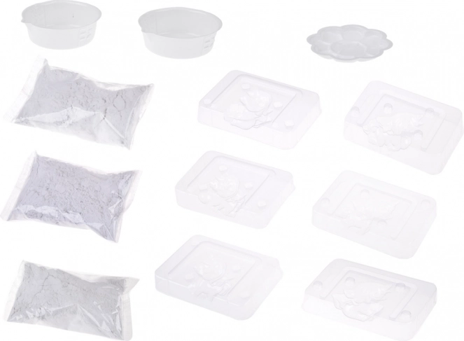 - Pachet complet – forme, ipsos, culori, pensule și accesorii.