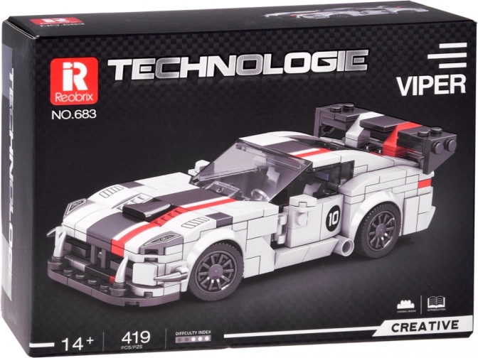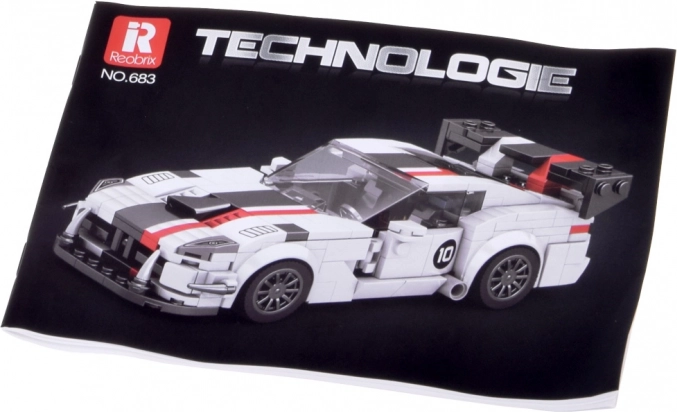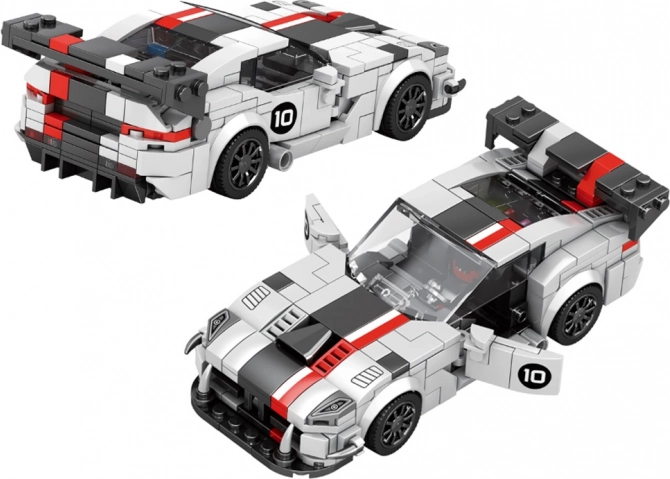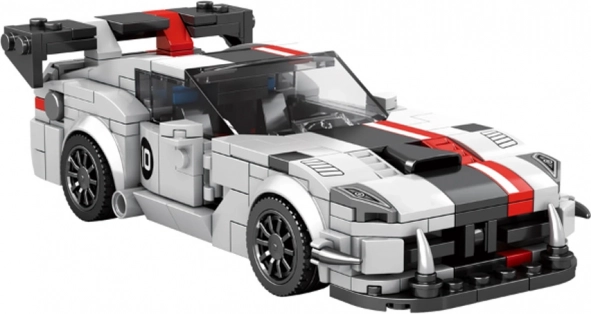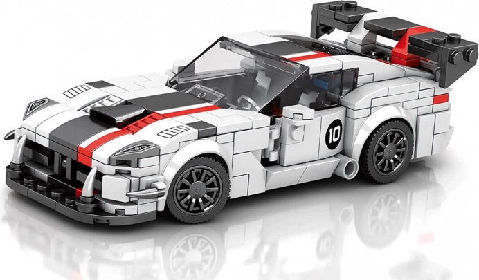 Set tehnic al unui supersport în culoare albă, cu o dungă negru‑roșie accentuată de la capotă peste acoperiș până la spoiler, oferă o experiență grozavă de construcție și un model final impresionant. Proporțiile alungite, caroseria joasă și aripile masive subliniază aspectul musculos, de curse.