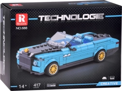 Model stilat pentru iubitorii motocicletelor clasice: setul technic construiește un cabriolet retro într-o nuanță de albastru închis cu roți aurii. Setul conține 417 piese realizate cu precizie, oferă o construcție de dificultate medie și dezvoltă imaginația spațială, gândirea logică și abilitățile manuale.