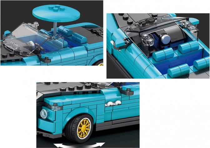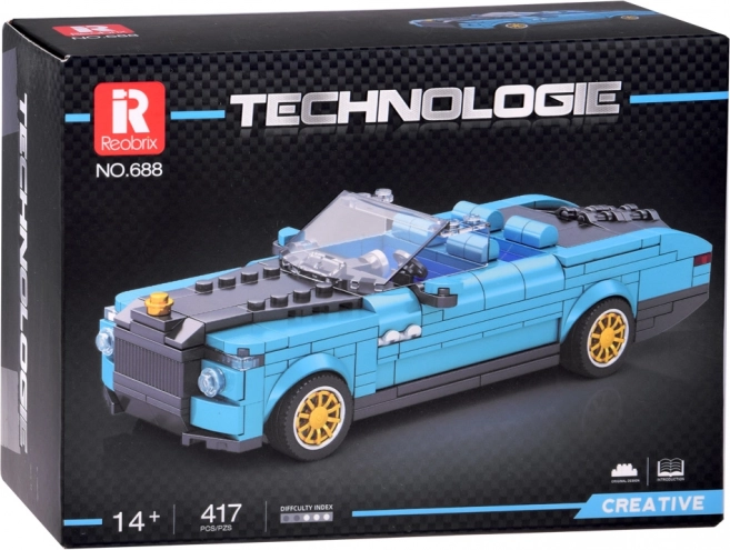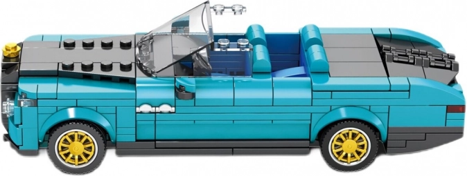 Set de construcție technic – cabriolet retro albastru cu roți aurii, 417 piese