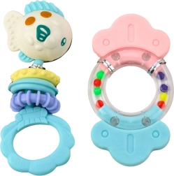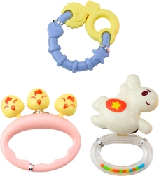 - Zornăitoare (emit sunete), inele de dentiție (masaj gingival), elemente pentru antrenarea prinderii și coordonării