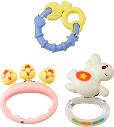 Acest set versatil include 7 zornăitoare și inele de dentiție diferite, fiecare element având o funcție specifică. Zornăitoarele emit sunete blânde și plăcute atunci când sunt scuturate, în timp ce inelele de dentiție masează gingiile și reduc disconfortul în timpul apariției primilor dinți. Formele ergonomice sunt adaptate mânuțelor mici ale copiilor pentru o prindere ușoară și dezvoltarea coordonării mână–ochi.