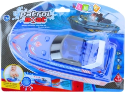 Pornește într-o aventură acvatică cu barca de patrulare albastră, care animă orice baie. Efectele luminoase și sonore realiste, împreună cu stropirea automată a apei și paleta rotativă pe partea inferioară, asigură o deplasare lină pe suprafața apei și multă distracție.