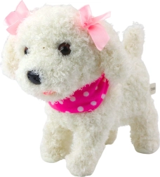 Acest cățel interactiv din pluș plăcut și catifelat este grozav atât pentru alintat, cât și pentru jocuri de rol. Datorită lesei incluse, în formă de lăbuță, puteți plimba cățelul la „plimbare”, unde va păși și scoate sunete ca un cățeluș adevărat. Eșarfa roz cu buline și fundițele drăguțe oferă jucăriei un aspect fermecător.