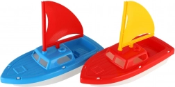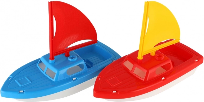 Alege între roșu cu velă galbenă și albastru cu velă roșie – ambele culori sunt intense și atrăgătoare pentru copii.