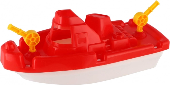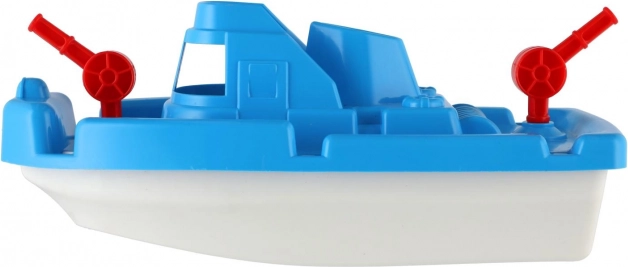 Această barcă de apă din plastic rezistentă este ideală pentru baie, piscină și joaca de vară în apă. Datorită ergonomiei rotunjite și materialului ușor, se ține confortabil de către copii și plutește fără efort la suprafață. Detaliile realiste ale punții și cabinei stimulează jocul creativ și dezvoltă motricitatea fină.