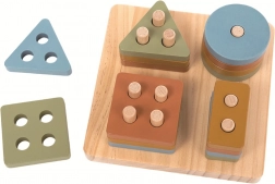Această jucărie de înșurubat din lemn, de calitate, oferă patru forme de bază – pătrat, triunghi, cerc și dreptunghi – în culori plăcute. Fiecare formă are un număr diferit de orificii, ajutând copiii să înțeleagă principiul sortării și al gândirii logice. Atunci când introduc piesele pe țăruși, copiii își antrenează în mod natural priza, precizia mișcărilor și concentrarea.