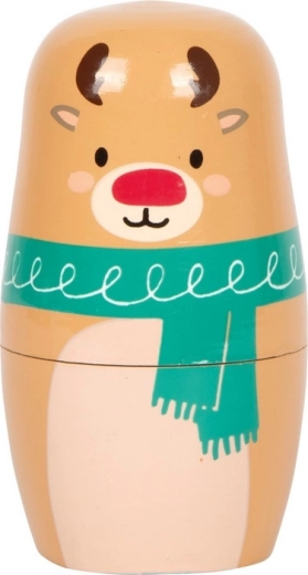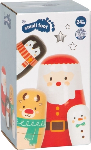 Descoperiți farmecul Crăciunului cu setul de matrioști din lemn SMALL FOOT. Figurinele colorate, lăcuite, se deschid ușor, iar piesele mai mici se introduc în cele mai mari. Acest lucru îi încurajează pe copii să exploreze, să exerseze răbdarea și să dezvolte motricitatea fină.
