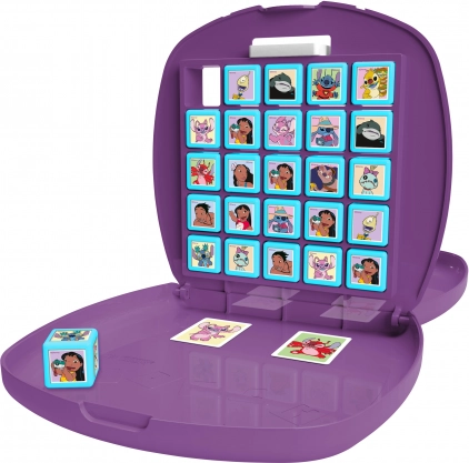 Acest joc inteligent de călătorie îmbină reguli simple cu tactică antrenantă. Caseta din plastic, rabatabilă, servește drept tablă de joc cu o grilă pentru întoarcerea plăcuțelor cu imagini. Jucătorii alternează, plasează și întorc plăcuțele pentru a crea un șir câștigător de personaje identice din Lilo & Stitch, blocând în același timp adversarul.