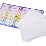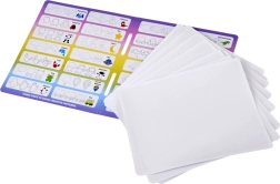 Sunt incluse un stylus/pensulă conectat(ă), o bază compactă pentru depozitare ușoară și un set de cartonașe albe pentru exersarea repetată a desenului după șabloane simple.