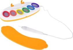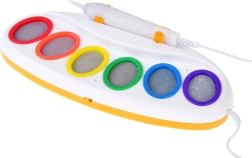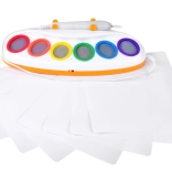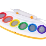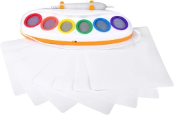 Baza cu plăcuțe colorate permite alegerea rapidă a nuanței. Este suficient să atingi cu pensula și să transferi culoarea pe hârtie – culorile se aprind după câteva clipe.