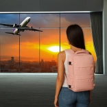 Rucsac roz practic pentru oraș și călătorii, cu dimensiuni de 45 × 30 cm, oferă 3 compartimente separate, buzunare organizate de depozitare și buzunare laterale pentru sticlă. Material rezistent Oxford 420D, curele de compresie pentru securizarea bagajului și bretele confortabil căptușite care asigură confort chiar și la purtare îndelungată.