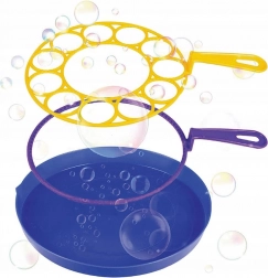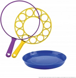 Acest set colorat de baloane de săpun este ideal pentru grădină, locul de joacă și petreceri aniversare. Datorită celor două tipuri de cercuri, poți crea cu ușurință atât baloane uriașe, cât și un nor de balonașe mici. Volumul mare de 450 ml de soluție asigură distracție îndelungată, fără întreruperi.