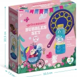 Un cerc creează baloane uriașe, celălalt transformă aerul într-un nor de balonașe mici – doar înmoi și fluturi.