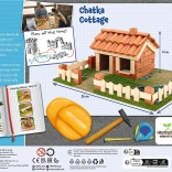 Aspect autentic al căsuței datorită cărămizilor naturale, scândurelelor din lemn și ambalajului din carton rezistent. Ideal pentru primul proiect de construcție al copiilor.