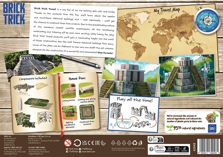 Trefl Brick Trick Travel: Piramidă cu 210 cărămizi din lut. Materiale reale, adeziv solubil în apă, construcții repetate și dezvoltarea îndemânării.