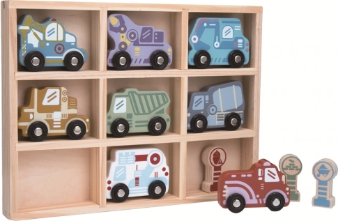 Descoperiți un set jucăuș cu 8 mașinuțe din lemn și 3 indicatoare rutiere, într-o poliță practică – ideal pentru camera copiilor și camera de joacă. Susține jocul imaginativ, dezvoltă motricitatea fină, coordonarea mână–ochi și creativitatea. Mașinuțele sunt concepute pentru mâinile mici ale copiilor, se prind ușor și sunt simplu de manevrat.