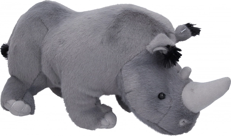 Acest rinocer de pluș, realizat realist, încântă prin suprafața sa catifelată și cusăturile de calitate. Datorită dimensiunii universale de 39 cm, se ține ușor în brațe și este potrivit pentru joacă, alint și ca decorațiune.
