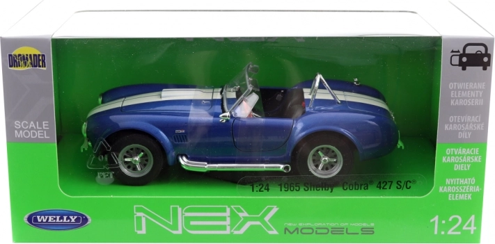 Model de colecție Shelby Cobra 427 S/C 1:24 cu construcție metal‑plastic, piese deschizabile și vopsea auto originală. Ideal pentru copii de la 8 ani și colecționari.