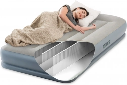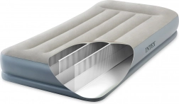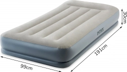 Saltea gonflabilă de o persoană INTEX, cu dimensiunile 191 × 99 × 30 cm, ideală pentru oaspeți, camping și călătorii. Are pompa electrică integrată pentru umflare rapidă, suprafață catifelată din velur pentru confort și tehnologia modernă Dura-Beam/Fiber-Tech pentru stabilitate și durabilitate. Include petic de reparare.